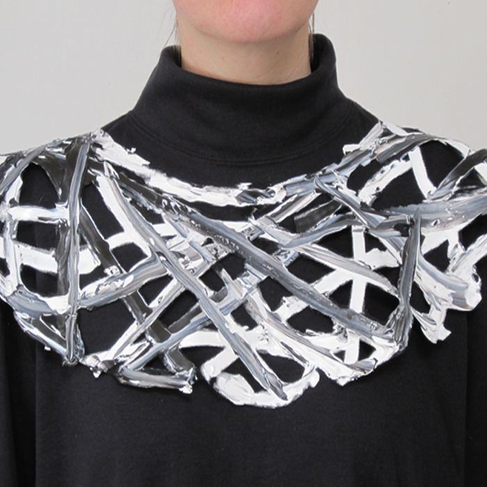 On the Spatial Drawings: in this new development Ann Sutton challenges herself with new materials, colour and movement. Having taken weave to its consummation, she passed her sophisticated technical equipment on to new makers, hung up her crown and grabbed a handful of new materials. She responded as she had in the 1960s when she discovered plastics, a material with no history and a huge future. The concentration on monochrome is also new to an artist whose work over five decades is synonymous with colour. In the series of Spatial Drawings, with a focus on potential kinesis, the viewer moves past and the work leaps into momentary action. She constantly draws while she travels, using vibration on a train or the swell of the sea to create vivid and changing lines and grids.